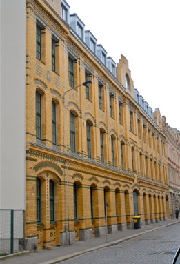 Das Loft befindet sich im renovierten Komplex einer Tabakmanufaktur. Von vorne gesehen liegt das Loft hinter den drei linken Fenstern des EG und 1.OG.